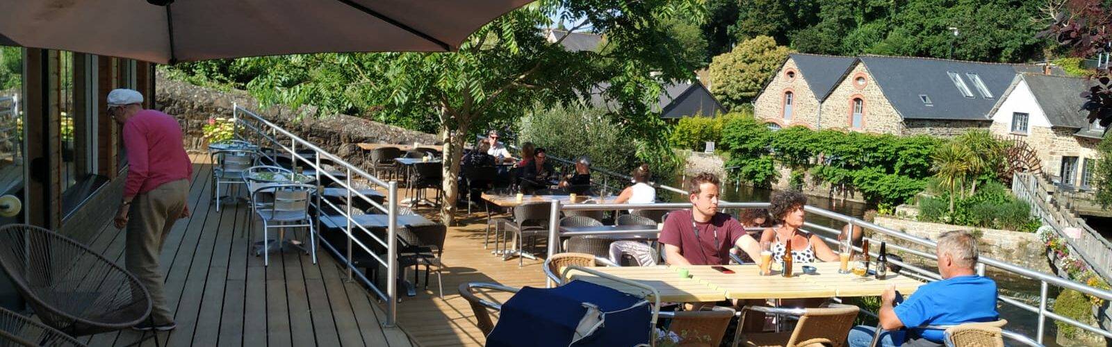 Hotel bed and Breakfast proposant une offre de grignotage sur une terrasse sans tabac dans un cadre bucolique avec vue sur la rivière et un moulin en pierre.